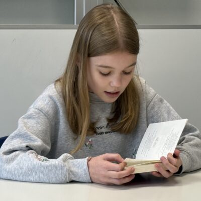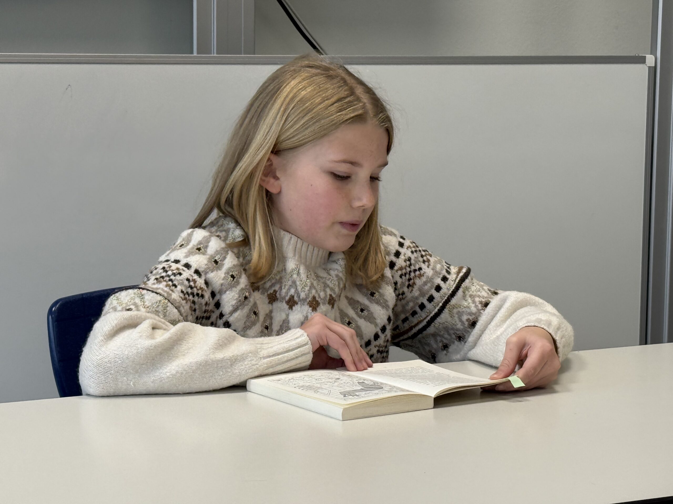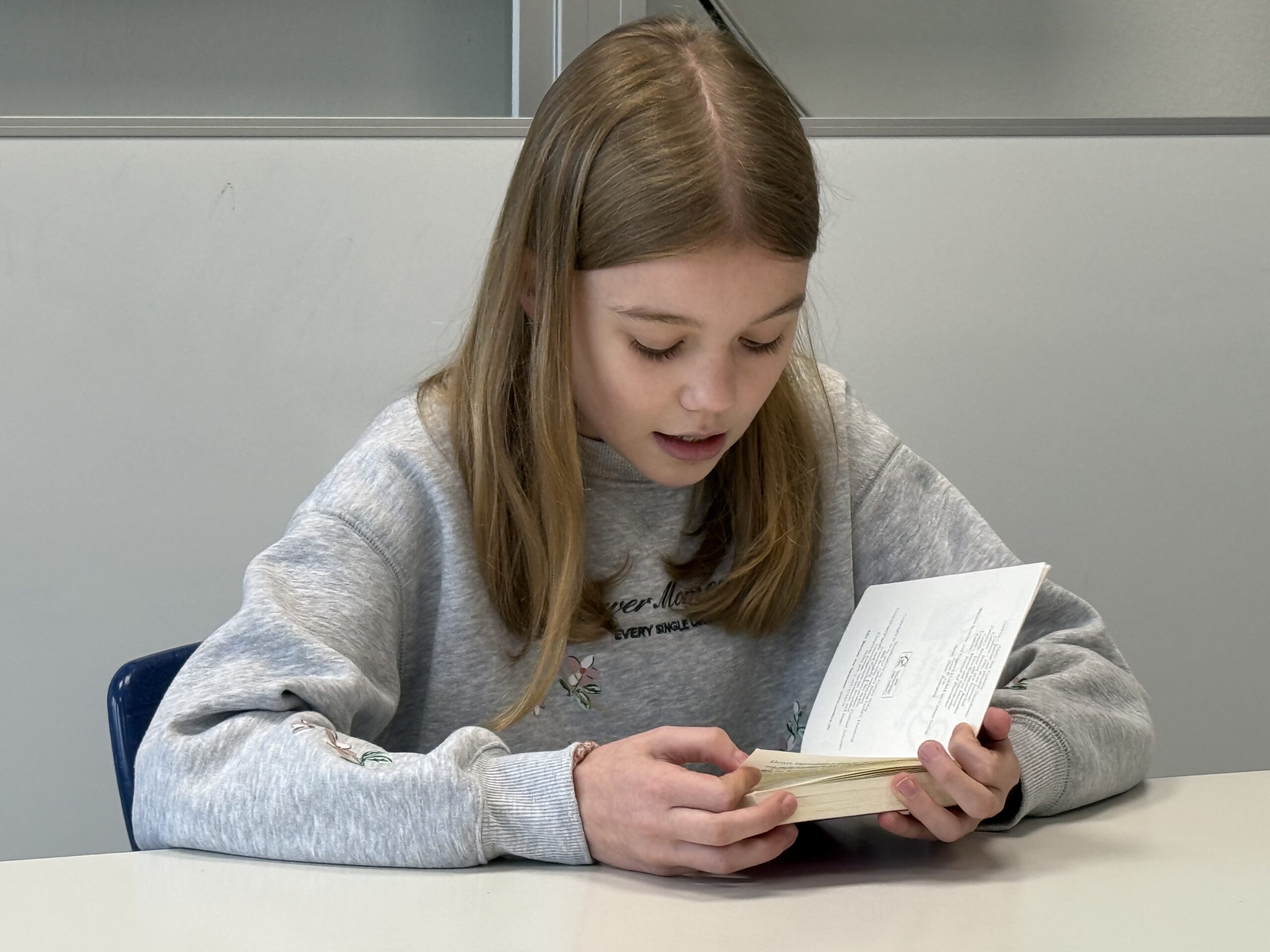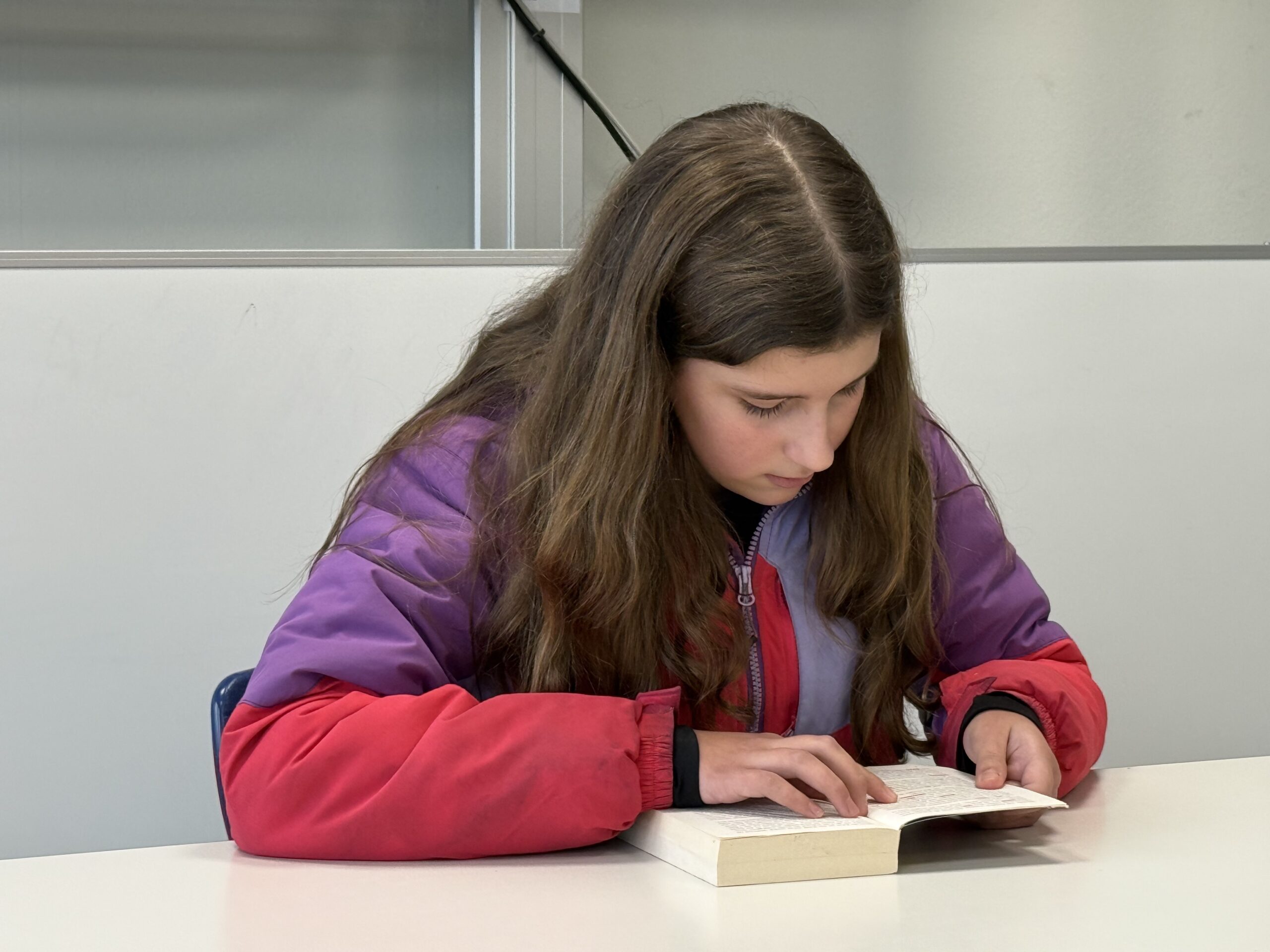 Den Auftakt machte Maya Rübel (6a) mit einem humorvollen Auszug aus „Ella in der Schule“ von Timo Parvela. Mit lebendiger Stimme und passender Mimik ließ sie die komischen Situationen rund um Ella besonders anschaulich lebendig werden.