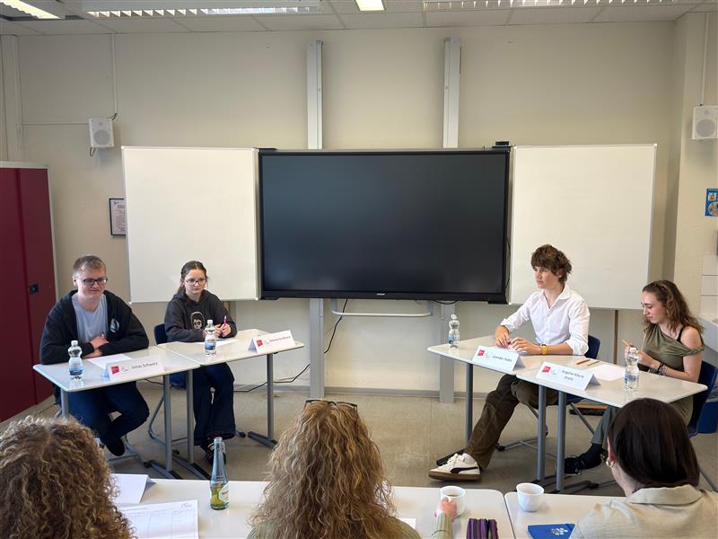 Schülerinnen und Schüler, die ebenfalls Interesse daran haben, über gesellschaftliche und politische Themen zu debattieren, sind herzlich eingeladen, an der „Jugend debattiert“-AG teilzunehmen. Nähere Informationen erhalten Interessierte bei Frau Maurer.