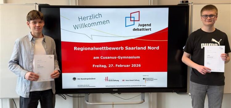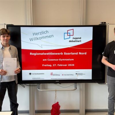 Zum ersten Mal wurde am 27.02.2026 das Regionalfinale des Wettbewerbs Jugend debattiert am Cusanus-Gymnasium ausgetragen. Schülerinnen und Schüler verschiedener Schulen traten dabei gegeneinander an, um ihr rhetorisches Können sowie ihre Fähigkeit zum sachlichen Argumentieren unter Beweis zu stellen.