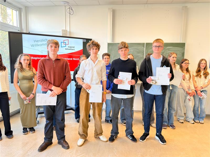 Jonas Schwarz konnte sich in der Altersstufe 2 erneut gegen die Konkurrenz durchsetzen und seinen Titel als Regionalsieger erfolgreich verteidigen. Damit qualifizierte er sich auch in diesem Jahr für den Landesentscheid von Jugend debattiert in Saarbrücken, bei dem er das nördliche Saarland vertreten wird. Julius Hoffmann steht als Ersatzkandidat bereit.